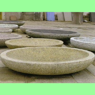Susanne Ibler versteht es durch Kombination verschiedener Oberflächenbearbeitungen auch einfachen Formen eine innere Spannung zu geben. Die polierten Innenseiten der Schalen spiegeln die Farben des Gesteins deutlich wider. Ob als Solitär auf der Terrasse dekorativ in Szene gesetzt oder funktional als Schale verwendet, stellen diese Kunstwerke auf jeden Fall ein High-light in jedem Garten dar, das neben Harmonie auch die Kraft des Steins transportiert.
